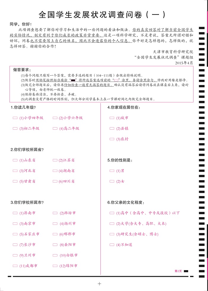 全國學(xué)生發(fā)展?fàn)顩r調(diào)查問卷